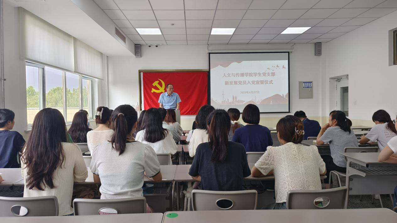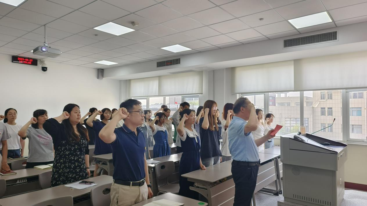 为庆祝中国共产党成立102周年,回顾党的光辉历程,讴歌党的丰功伟绩,继承发扬党的光荣传统,6月27日下午,伟德国际victor1946开展新发展党员入党宣誓仪式。学生第二党支部书记井新伟主持会议,学院党委书记朱桂林到会指导, 30名预备党员及学生党支部委员参加。