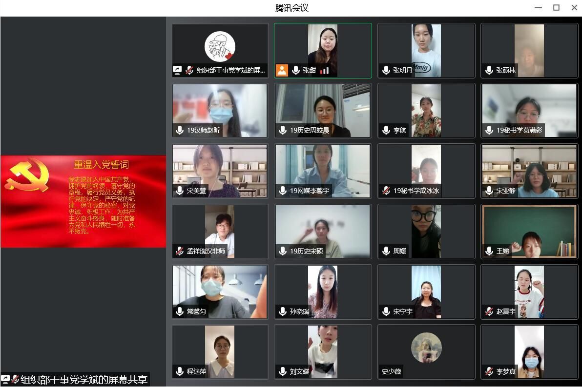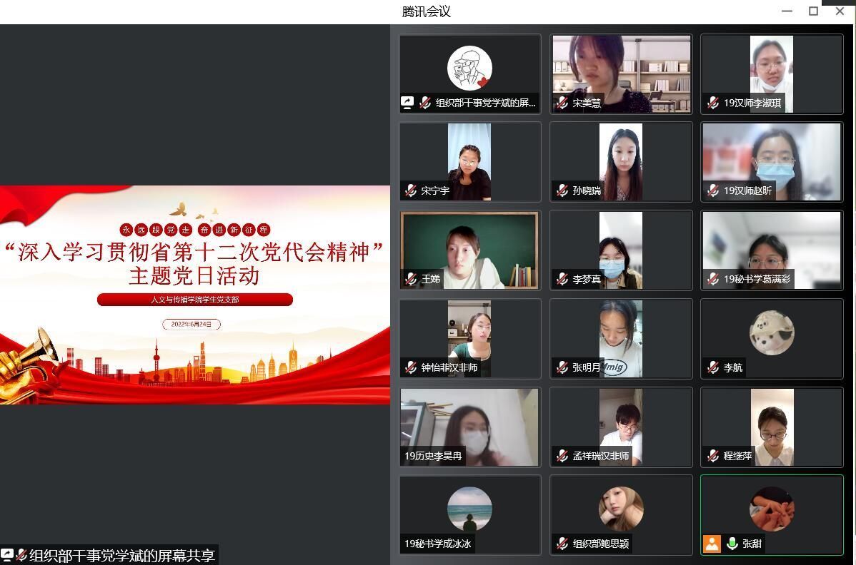 为庆祝中国共产党成立101周年,推动党史学习教育常态化长效化,6月24日晚,伟德国际victor1946学生党支部开展“深入学习贯彻省第十二次党代会精神”线上主题党日活动,学生党支部组织委员张甜主持。
