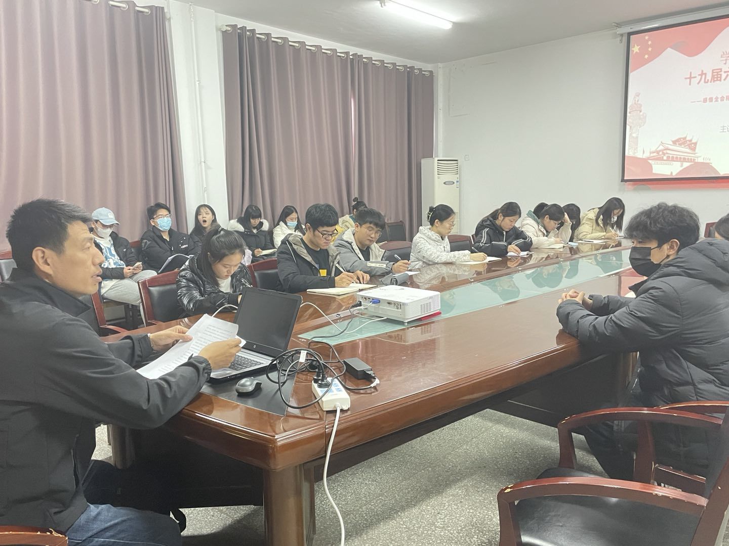 12月10日下午,伟德国际victor1946学生党支部在会议室开展“学习贯彻党的十九届六中全会精神”主题党日活动,学生党支部40余名党员参会,会议由学生党支部书记马永涛主持。