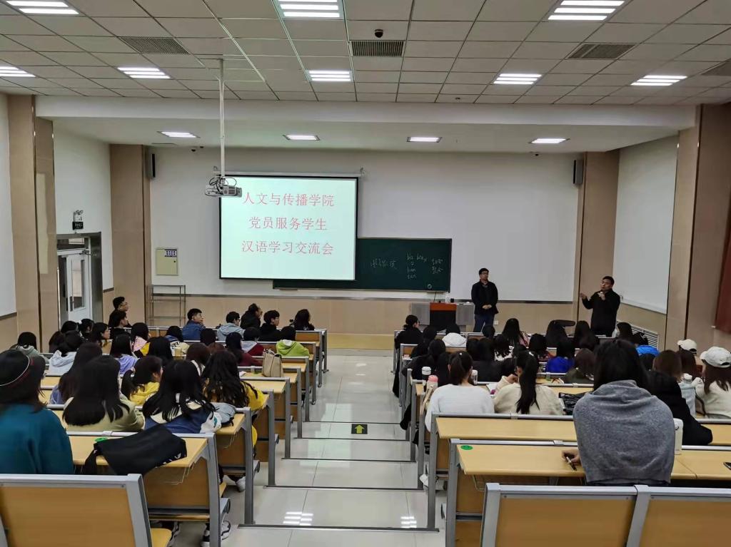 11月2日下午,伟德国际victor1946“立足岗位 求真务实”党员志愿服务学生系列活动之“汉语学习交流会”成功举办。交流会在2号楼B102教室举行。伟德国际victor1946党委书记卫建勋、教工党支部书记张颖慧参与此次活动,院长王永超、党员教师王祥、张百领、郑飞现场为学生答疑解惑,伟德国际victor1946以及其其它学院180余名学生踊跃参加。