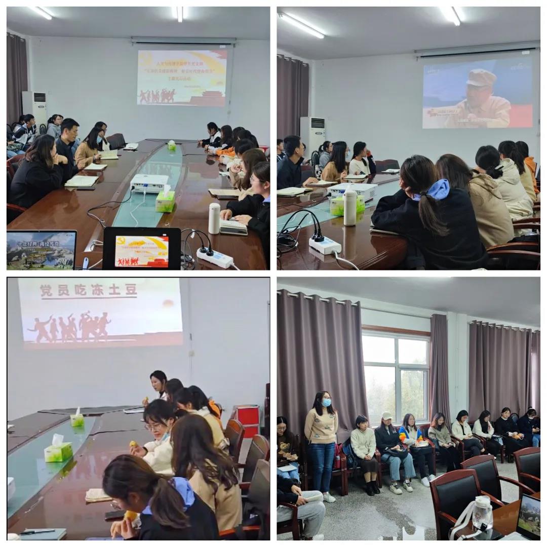 71年前的10月25日,中国人民志愿军奉命出兵朝鲜,抗美援朝,保家卫国,浴血奋战,最终赢得了抗美援朝战争的伟大胜利。今日,我院学生党支部党员通过观看爱国主义影片《长津湖》片段、试吃冻土豆,让各位党员真实地体验到战争年代的艰苦条件,在场党员无不为志愿军保家卫国、英勇献身的精神所震撼。