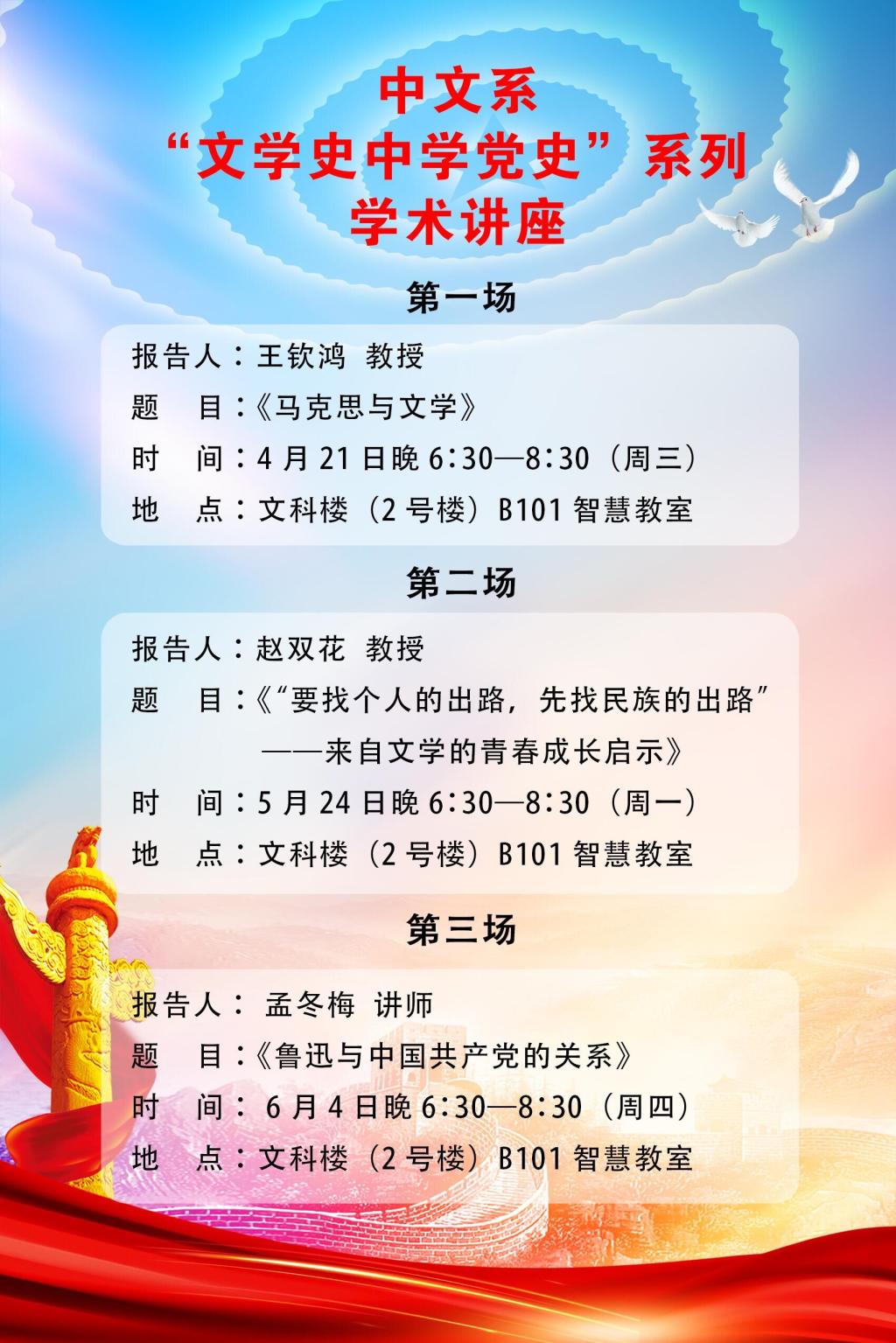 党史学习教育在着意于“深”、着力于“实”上下工夫。4月至6月,中文系将连续推出“文学史中学党史”系列学术讲座,加强党史学习教育、爱国主义教育、文学传统教育,提升文化认同。“红五月”(第四季)文化党建活动,将通过举办“中华经典诗文咏唱会”及走进红色教育基地等活动,将党史学习教育与弘扬中华优秀文化紧密结合起来。继续开展“我为师生办实事”系列活动,采取召开专题座谈会、走访调查、个别访谈、问卷调查等方式深入开展调研,开展“亮身份、强服务、做表率”活动等。学习调研求实效,服务师生见行动,有力推动党史学习教育扎实有效开展。