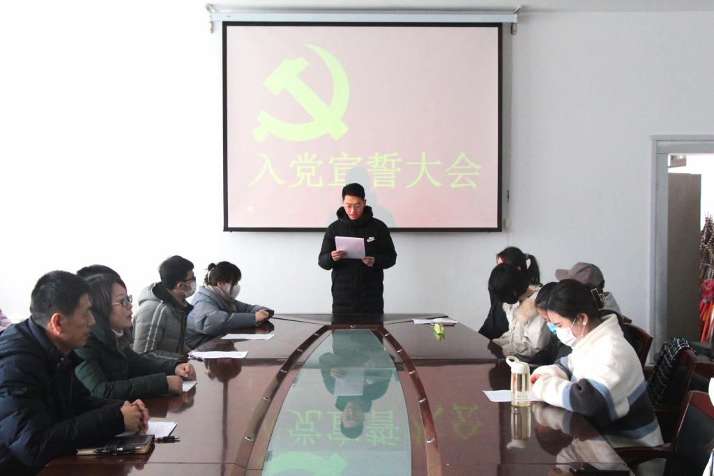 2020年12月21日上午,中文系学生党支部在文科楼会议室举行了隆重的入党宣誓大会。中文系党总支副书记李青、学生党支部书记马永涛、辅导员齐德华、倪召欣、颜雯、部分老党员代表以及34名新发展党员出席了此次宣誓大会。