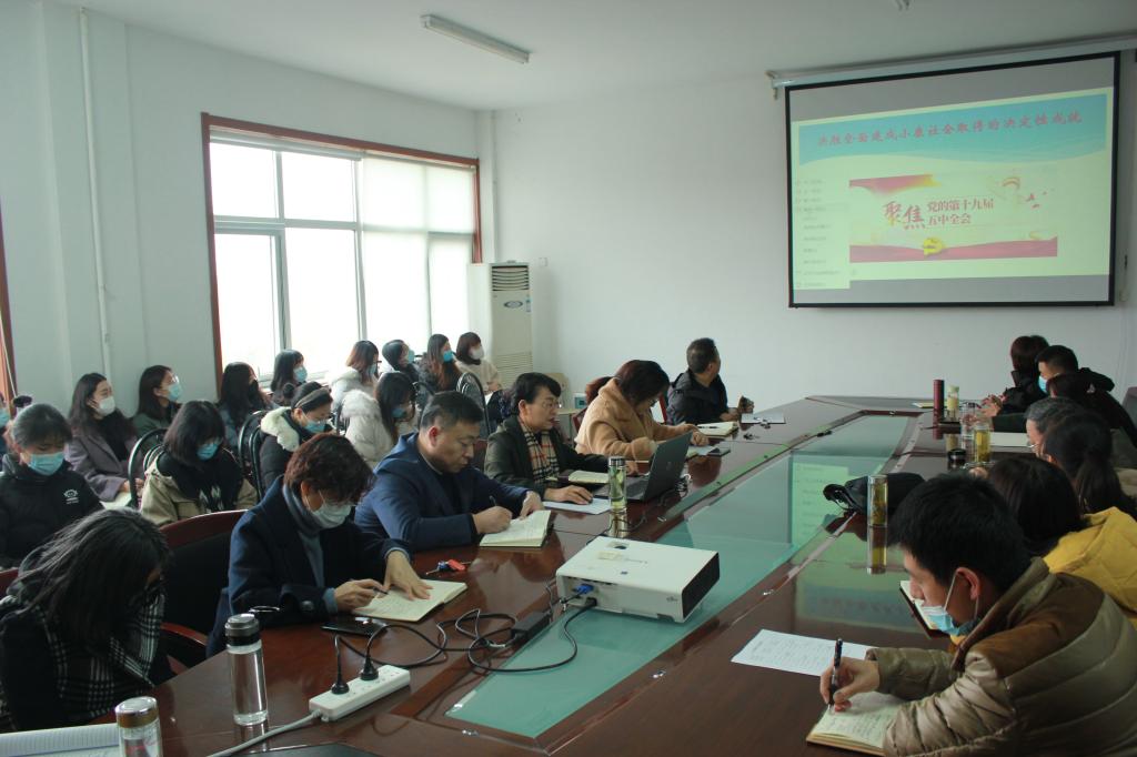 王艳萍以“贯彻新理念 明确新目标 开启新征程”为题进行宣讲。她带领同志们从五中全会的召开;决胜全面建成小康社会取得的新成就;我国发展环境面临的深刻复杂变化;到二〇三五年要实现的远景目标;“十四五”时期经济社会发展指导思想和遵循的原则;“十四五”时期经济社会发展主要目标和工作要求等方面认真学习领会党的十九届五中全会精神,并要求全体党员:一要深刻领会党的十九届五中全会的重大现实意义和深远历史意义;二要准确把握党的十九届五中全会的核心要义,不断提高运用全会精神指导工作的思想自觉和行动自觉;三要对照全会精神,在思想上、认识上、行动上找差距,坚持“不忘初心、牢记使命”,教书育人、干事创业,真正发挥党员的先锋模范作用。