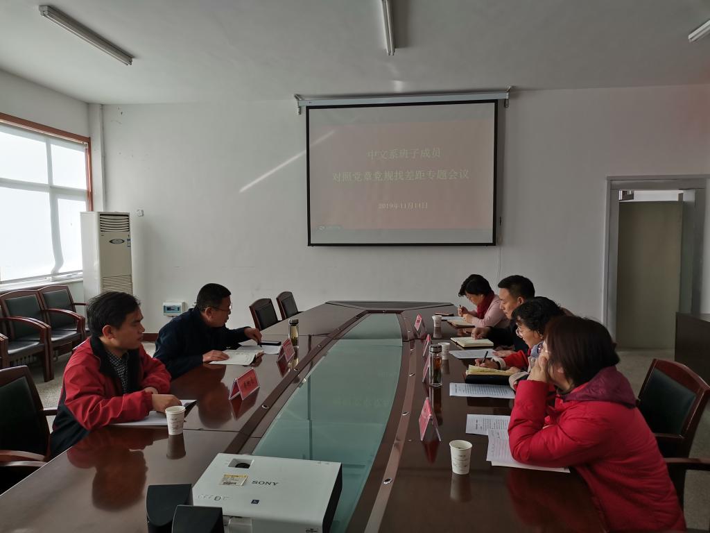 11月14日上午,中文系在系会议室召开班子成员对照党章党规找差距专题会议,学校主题教育第三指导组学校党委组织部部长李刘成、宣传部副部长李树亮等到会指导。系班子成员参加会议,会议由系党总支书记王艳萍主持。