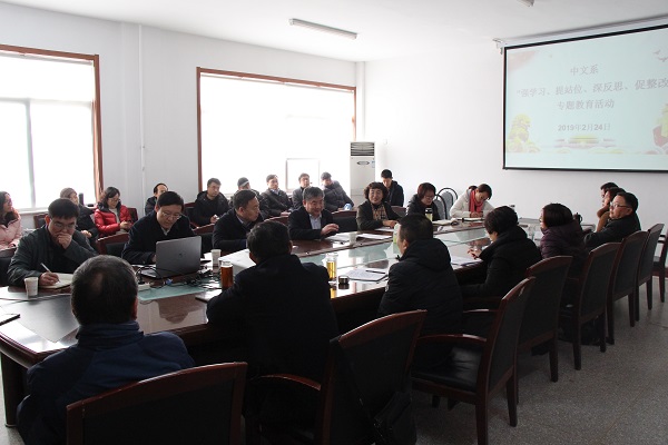 中文系党总支书记王艳萍首先宣读了《中文系开展“强学习、提站位、深反思、促整改”专题教育活动实施方案》。系主任王永超传达了《教育部关于印发<新时代高校教师职业行为十项准则><新时代中小学教师职业行为十项准则><新时代幼儿园教师职业行为十项准则>的通知》、《新时代高校教师职业行为十项准则》等文件和有关通报案例。6名教师代表分别结合自身实际,交流了学习感悟。
