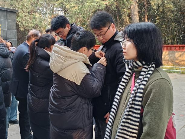 在金乡羊山红色教育基地烈士纪念碑前,各位老党员庄重地为预备党员佩戴党徽并寄语嘱托。随后,18名新党员面对鲜艳的党旗庄严宣誓,立下承诺,愿为共产主义奋斗终身。