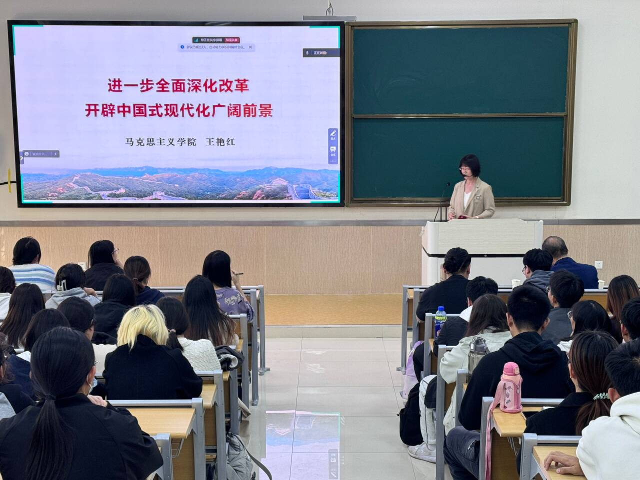 为深入学习贯彻党的二十届三中全会精神,落实立德树人根本任务,坚持不懈用习近平新时代中国特色社会主义思想铸魂育人,10月28日,学院在2号楼B102教室举办党的二十届三中全会精神宣讲会,马克思主义学院王艳红以“进一步全面深化改革,开辟中国式现代化广阔前景”为题围绕学习贯彻党的二十届三中全会精神进行了宣讲,学院党委书记朱桂林、辅导员、学院第三十四期发展对象、学生党支部全体党员、部分24级新生参加。宣讲会由学院党委委员、组织员井新伟主持。