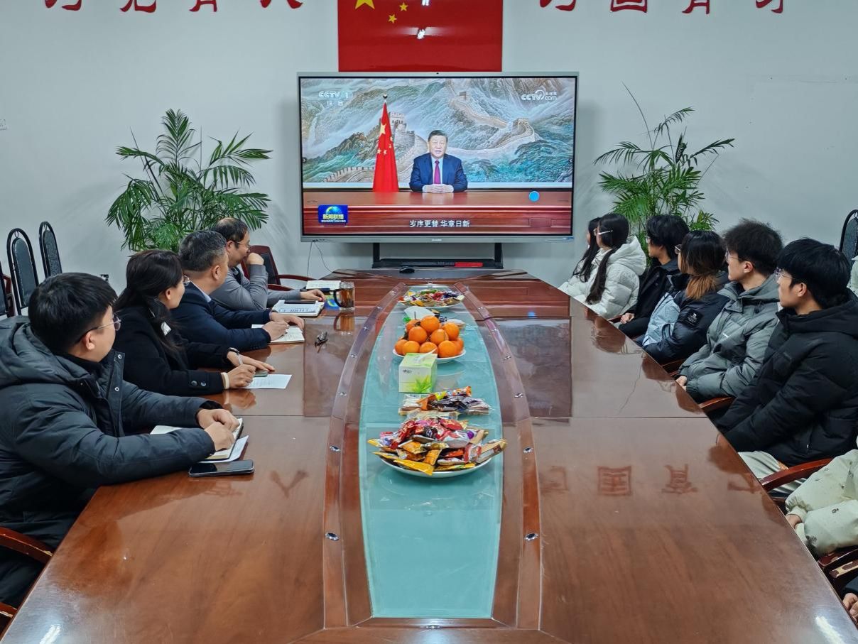 聆听领袖新年讲话,激发爱党爱国情怀,铸牢中华民族共同体意识。2025年12月31日晚七点,学院四楼会议室座无虚席,我院数十名汉族、维吾尔族、回族、壮族、布朗族、穿青人等多民族(族群)师生齐聚一堂,通过收看央视《新闻联播》节目,聚精会神聆听国家主席习近平发表的2026年新年贺词。学院党委副书记、院长张颖慧,院党委副书记徐俊凯以及院团委书记倪召欣出席活动,党委书记王永超主持活动并作总结讲话。