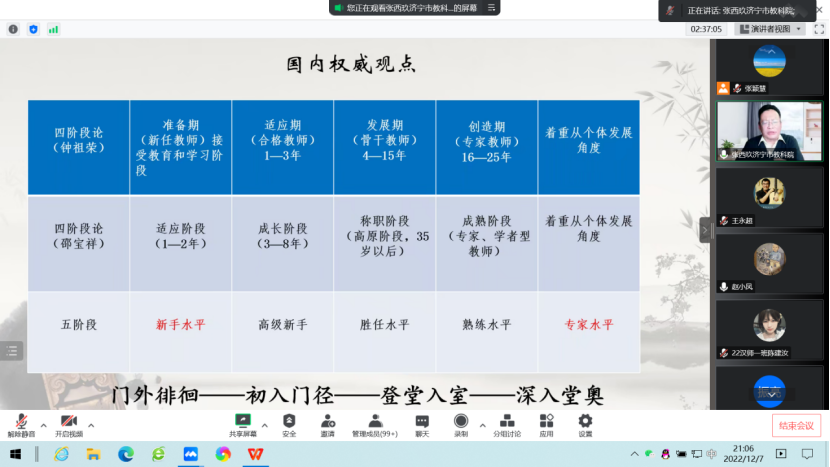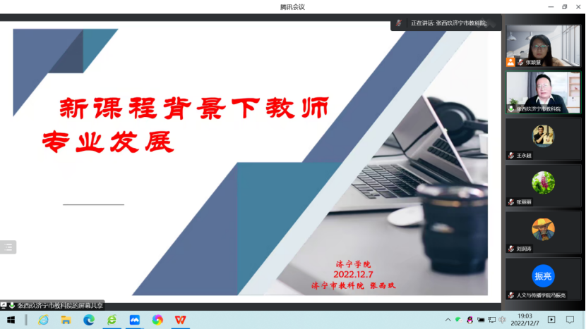 12月7日晚,伟德国际victor1946“博雅讲坛”第二期暨“2022迎新学术活动”系列演讲第三场准时开讲。论坛特邀山东省特级教师、济宁市教育科学研究院副院长张西玖畅论《新课程背景下教师专业发展》。该院院长助理张颖慧博士主持活动,200多名师生云端参会。