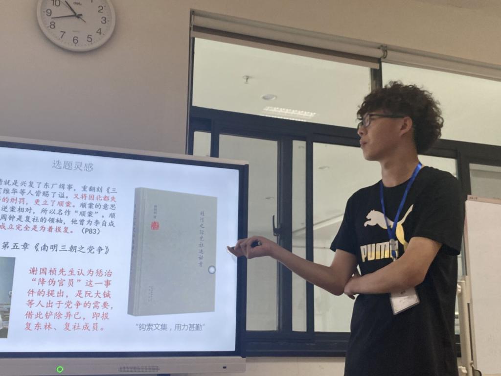 论坛设有作者报告、同学评议、教师评议和集体讨论等环节。在作者报告环节中,魏聪同学作了题为《南明弘光政权惩治“降伪官员”考析》的报告发言。西北大学曹循教授等史学专家对论文进行了点评,充分肯定了文章的原创性和学术性,并对作者致力于史学研究给予高度评价。