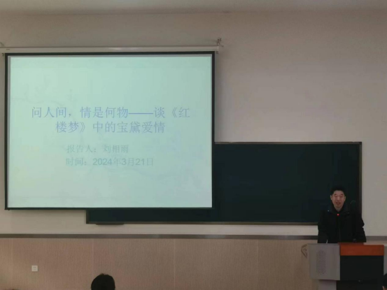 3月21日下午,曲阜师范大学文学院教授、博士生导师刘相雨受邀做客我院东山讲坛,以《问人间,情是何物——谈<红楼梦>中的宝黛爱情》为题作学术报告。报告会由我院院长王永超教授主持。我院师生参与报告会。